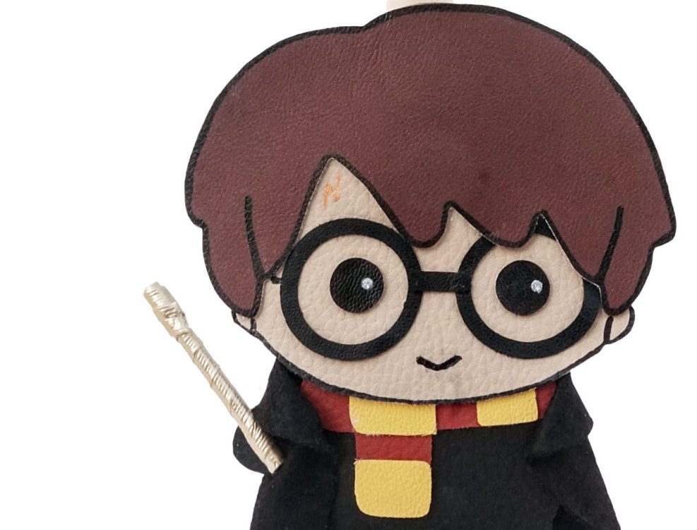 Χειροποίητη λαμπάδα Harry Poter από μαύρη, καφέ και μπεζ δερματίνη.